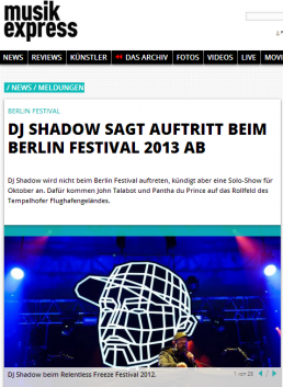 Musikexpress: DJ Shadow at Berlin Festival